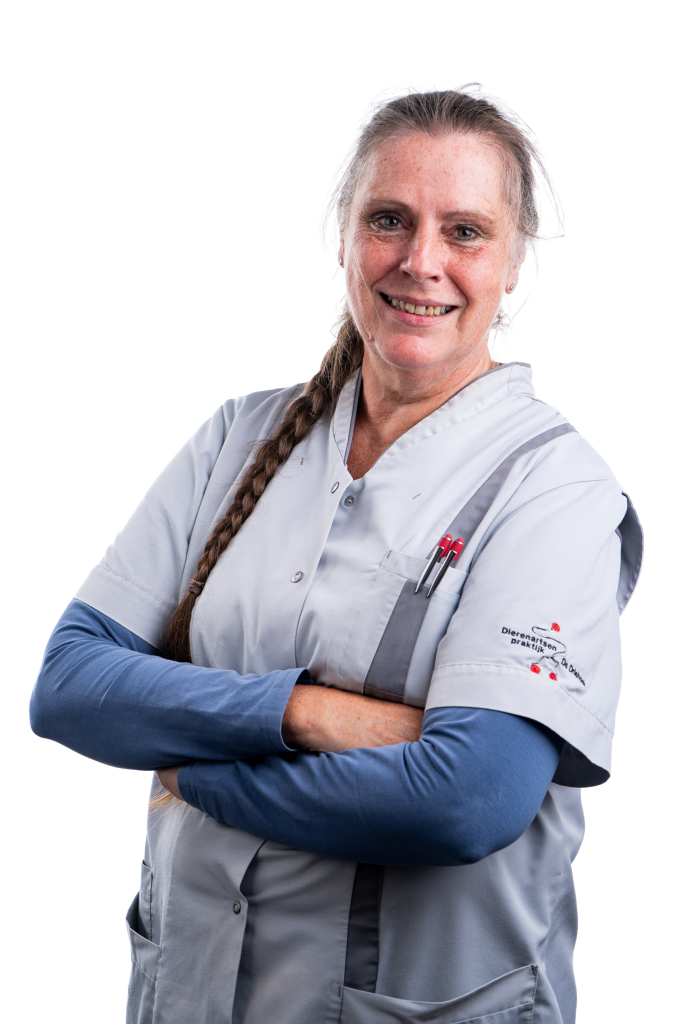Alweer heel wat jaartjes geleden (op 1 augustus 1990) ben ik begonnen als dierenartsassistente bij de “DAP Twello”, destijds aan de Domineestraat in Twello. Sinds de fusie met de praktijken Klarenbeek/Voorst en Loenen in 2003 vertoefde ik hoofdzakelijk in de dependance aan de Torenbosch in Twello. Na de sluiting van Twello ben ik sinds november 2018 met veel plezier werkzaam in Klarenbeek. Ik houd mij voornamelijk bezig met telefoon beantwoorden, administratie landbouwhuisdieren en klaarzetten medicijnbestellingen voor de veehouders. Mijn speciale aandacht gaat uit naar de “Kwaliteitsbewaking Geborgde Dierenartsen” binnen onze praktijk.
